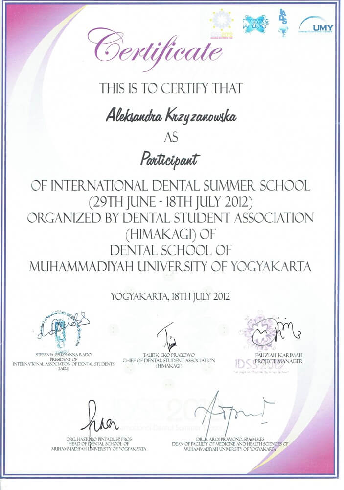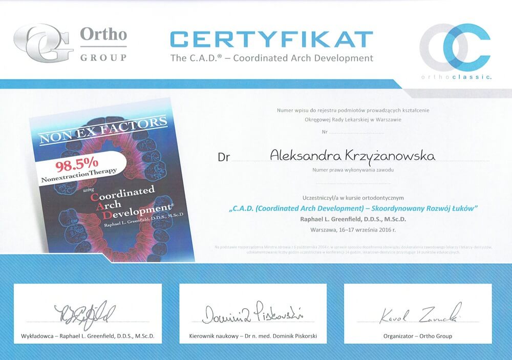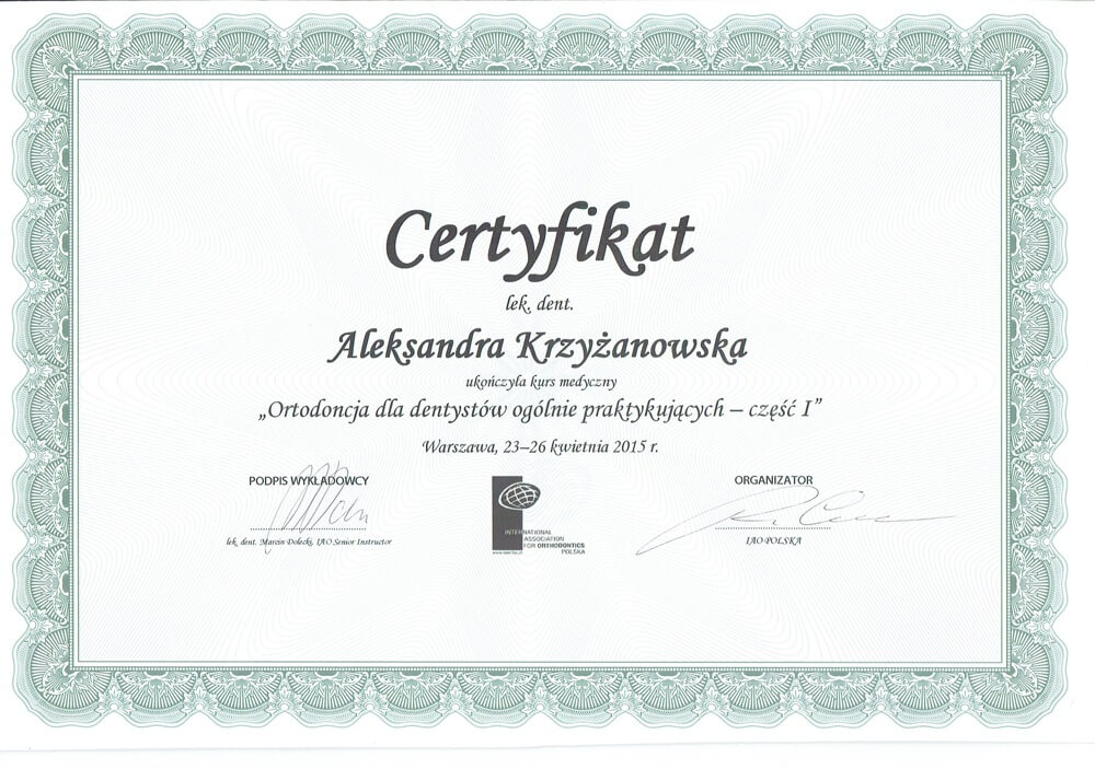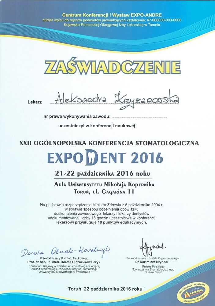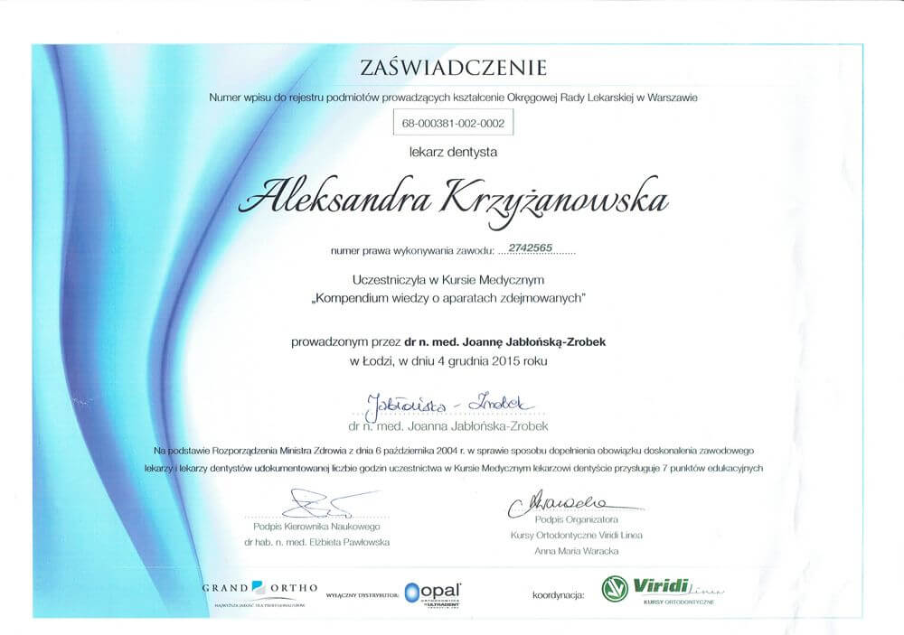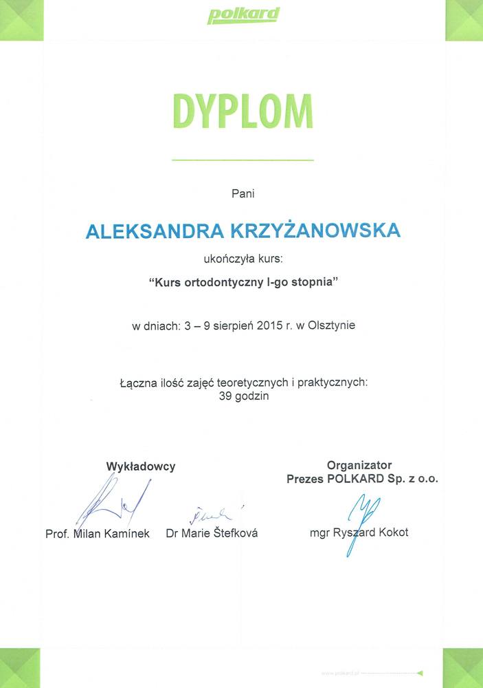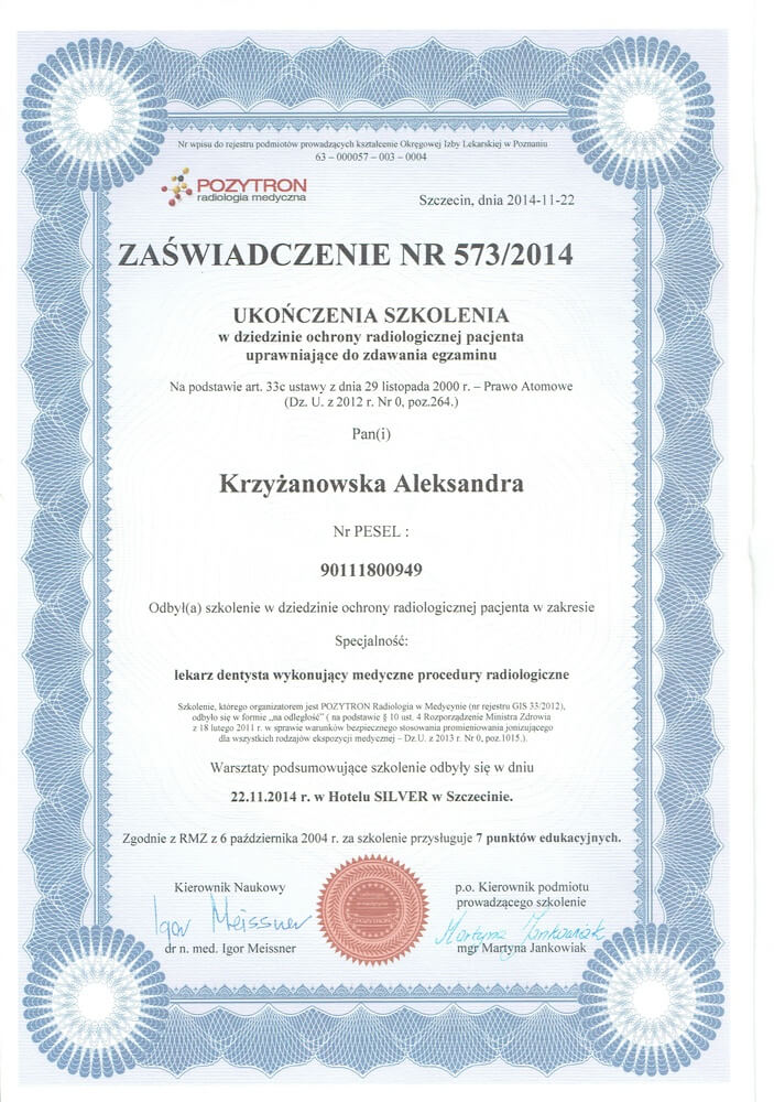 ukończyła Pomorski Uniwersytet Medyczny w Szczecinie, absolwentka podyplomowych studiów Estetyka Twarzy wydziału lekarskiego II Uniwersytetu Medycznego w Poznaniu, autorka publikacji naukowych z zakresu ortodoncji i estetyki twarzy, wykładowca akademicki w Katedrze Ortodoncji i Ortopedii Szczękowej Uniwersytetu Medycznego w Poznaniu, słuchaczka Master in Science of Orthodontics na Uniwersytecie w Krems (Austria), specjalizuje się w zakresie leczenia ortodontycznego dzieci i dorosłych, a swoje umiejętności podnosi na licznych kursach w Polsce i za granicą. Należy do Polskiego Towarzystwa Ortodontycznego (PTO). W pracy stawia na dokładność, profesjonalizm oraz holistyczne spojrzenie na pacjenta.